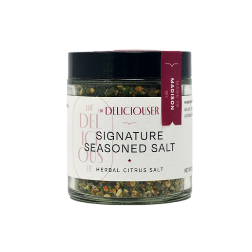 The Deliciouser's, from Milwaukee, Wisconsin crafts their house blend of sea salt with a bold mix of coarsely ground herbs, spices and a pop of citrus. The perfect addition to "your favorite chef's" kitchen or pantry.